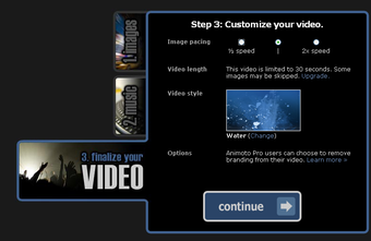 Os vídeos criados pelo Animoto impressionam. Infelizmente o serviço gratuito do site limita as opções de estilo para os vídeos, além de limitá-los a apenas 30 segundos.